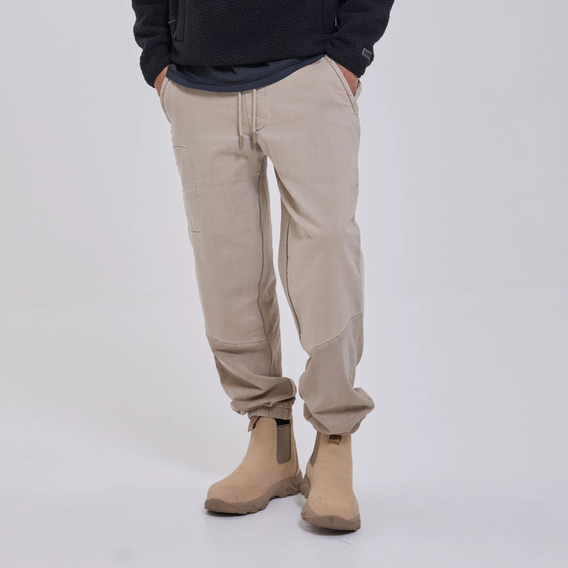 - 400gsm cotton fleece track pant with drill front panel.